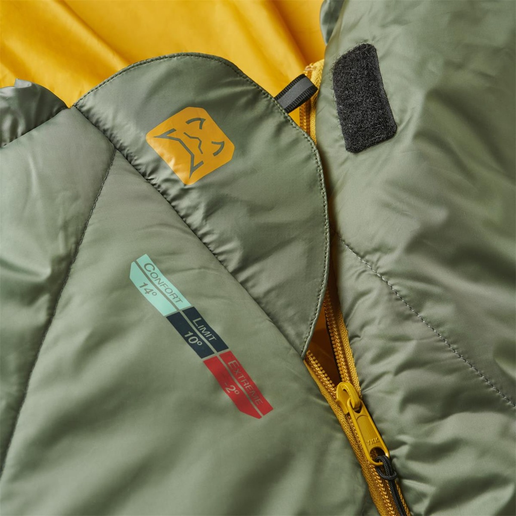 Cuenta con collarín térmico interno que ayuda a conservar el calor corporal durante la noche, además de un bolsillo interior para guardar objetos pequeños de forma segura. La cremallera puede ser izquierda o derecha, permitiendo la unión de dos sacos compatibles, lo que aporta mayor versatilidad según la necesidad.