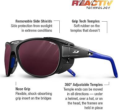 Los Julbo Explorer Reactiv SP 2-4 representan la evolución del modelo icónico de Julbo para alpinismo. Con un diseño más ergonómico, ligero y ventilado, ofrecen un rendimiento superior en terrenos de alta montaña. Sus lentes Reactiv fotocromáticos (cat. 0–4) se adaptan de manera instantánea a variaciones de luz, proporcionando visibilidad óptima desde condiciones nubladas hasta la intensidad extrema del glaciar.