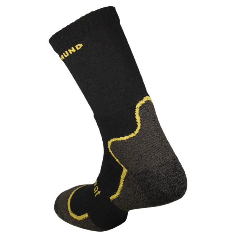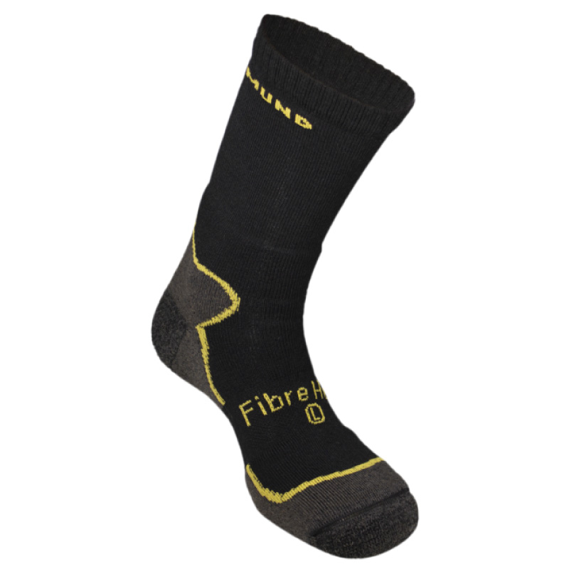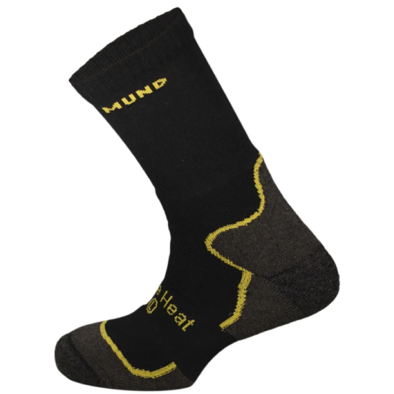 Las medias de trekking Fibre Heat Lhotse de Mund Socks están diseñadas para actividades en condiciones de frío extremo, como trekking, montañismo o esquí, así como para el uso diario en jornadas invernales. Fabricadas con una mezcla de lana merino Ritcher® y la innovadora fibra Fibre Heat®, estas medias aprovechan el sudor corporal para generar calor de manera autónoma, almacenándolo en microcápsulas que emiten ondas infrarrojas, proporcionando un abrigo constante y natural incluso en temperaturas de hasta –30°C.